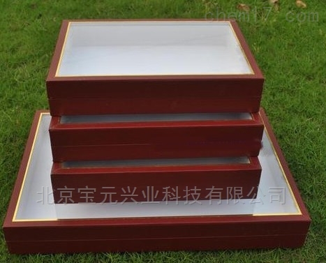 我厂生产的标本盒都是木制成型,边框材料均为加厚桐木实木板,边框实木厚度达15mm,五合板作为底板构而成,,外裱红色漆布并镶有黄色金边。针插标本盒盒底粘有泡膜板或软木便于插针,高清玻璃表面并镀金边也可按用户要求订做。