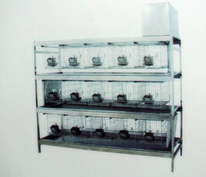 不锈钢可冲洗式兔笼架,根据规格大小可分为12笼位和15笼位大小,材质为304不锈钢、带有饮水器、可自动、半自动冲洗动物粪便,方便好用。根据不同规格配有12个或15个兔笼。