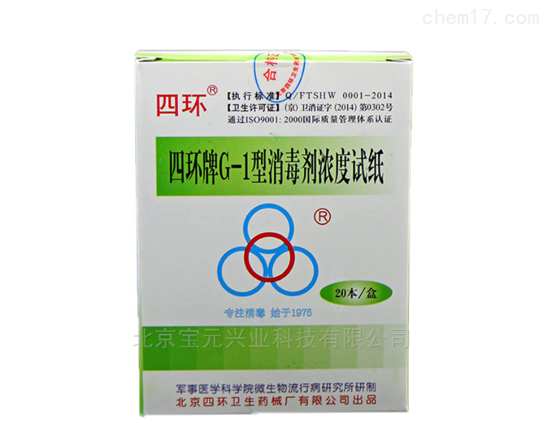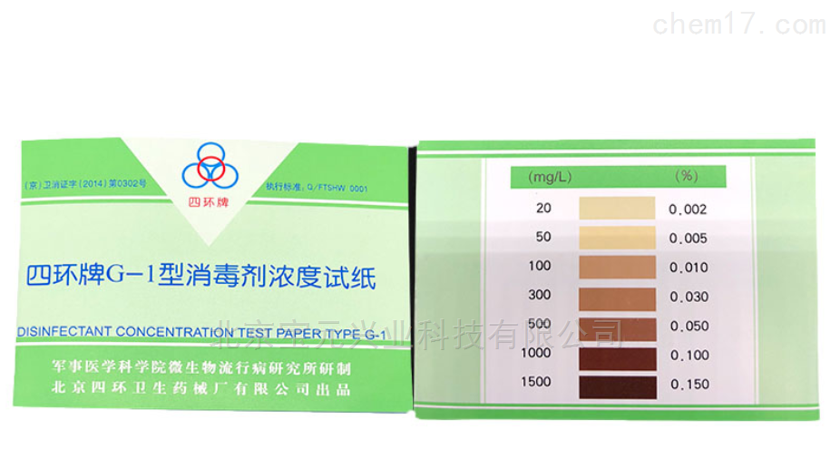 产地:北京四环牌G-1消毒剂浓度试纸(含氯测试)测氯